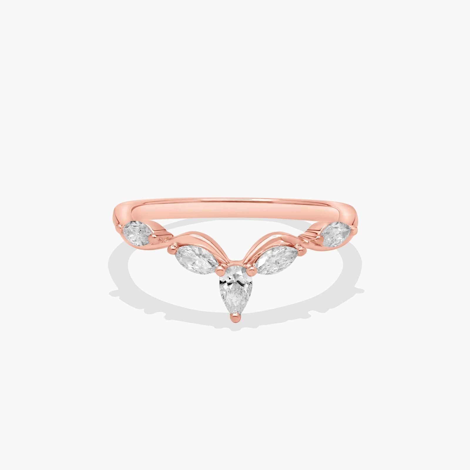 This beautiful wedding ring includes delicate marquise diamonds set in a floral vine pattern that meet in a pear diamond tip.