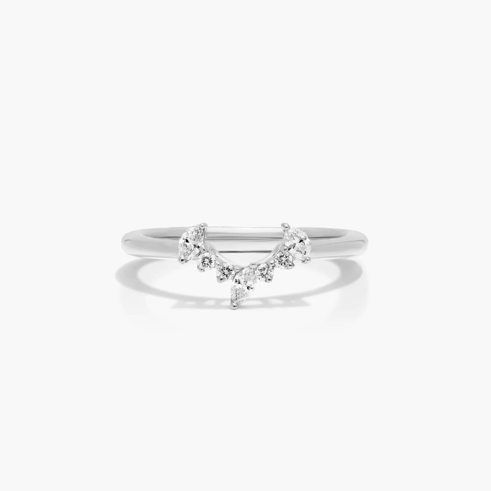 This beautiful ring combines round and marquise diamonds in an arched center to create a brilliant shine.