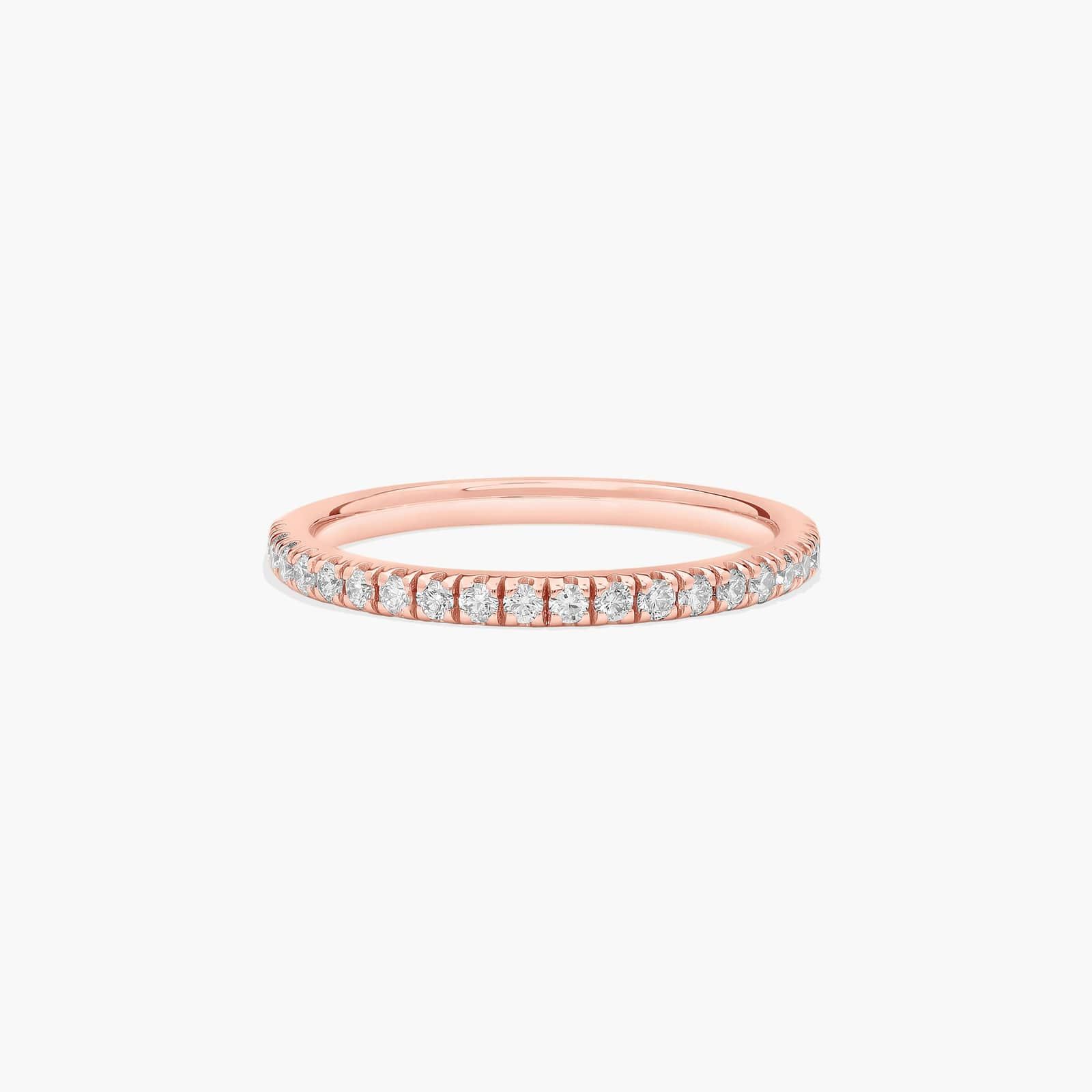 This eye catching diamond ring features a row of round brilliant diamonds that match perfectly with our Cathedral pavé Crown Diamond Engagement Ring.