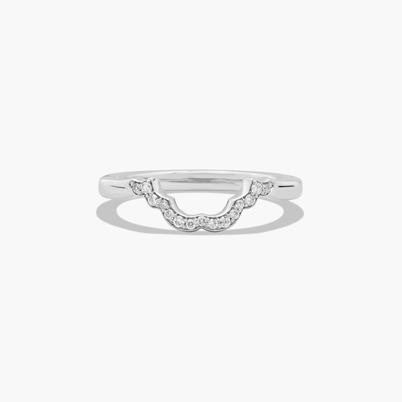 Designed to fit together with a matching engagement ring, side by side, with the same shapes, sizes and setting styles of the engagement ring. Striking and symmetrical!