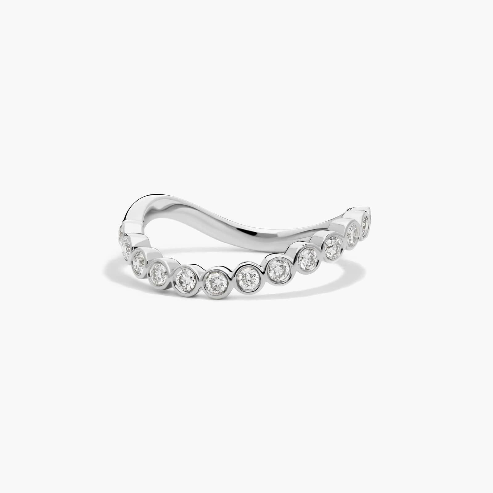 From the Sculptural Waves collection, this 14K White Gold wedding ring features Bezel set Round diamonds. The minimalist design with a width of 2.3mm ensures a secure and polished look.