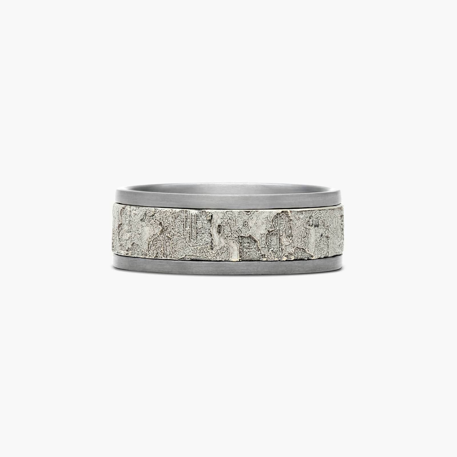 Fractured Texture Center Men's Wedding Band In 1K White Gold and Tantalum (8.00mm)