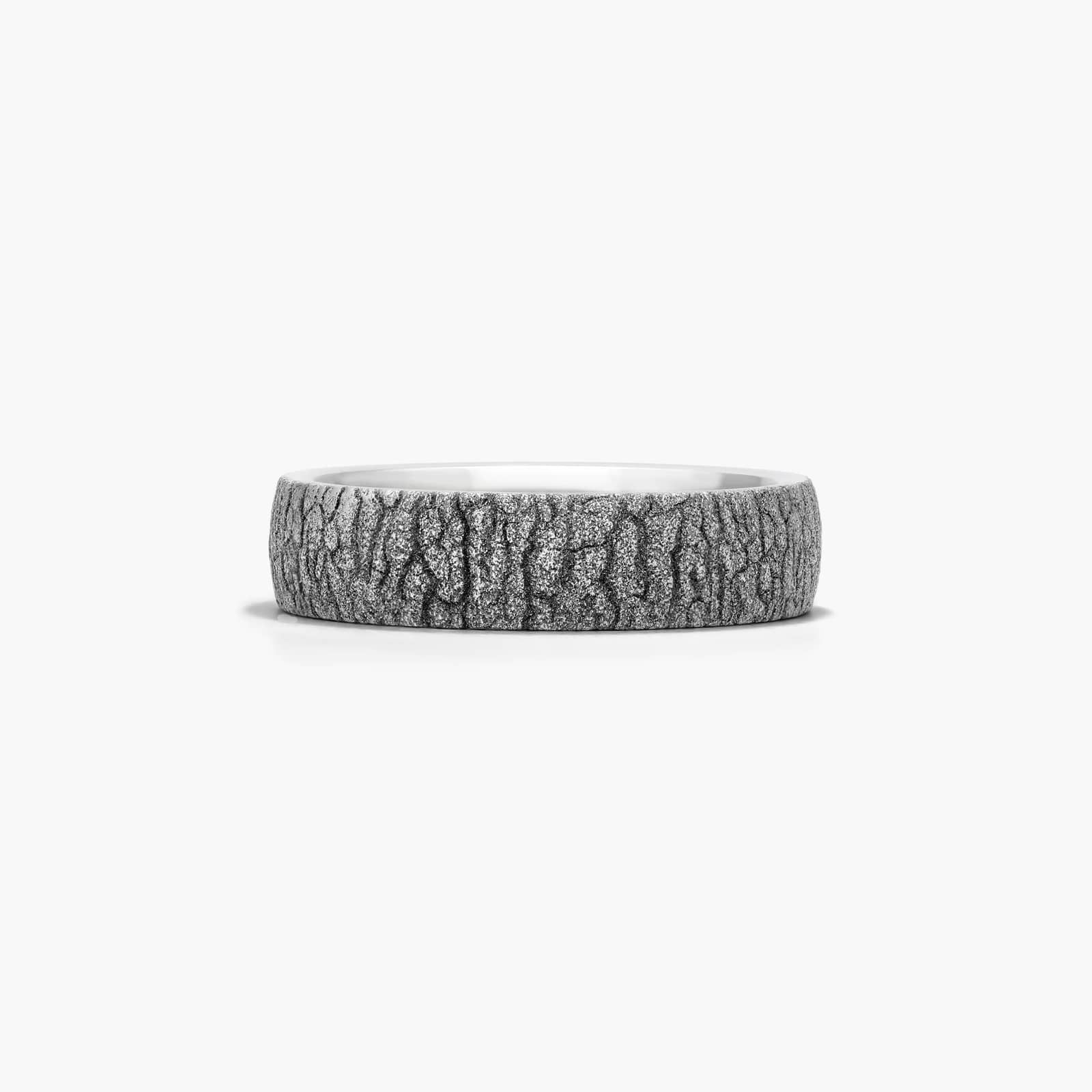 Cobalt is four times harder than gold, hypoallergenic, and scratch resistant creating the perfect combination! This 6mm band features a striking bark pattern for those looking for edgy design.