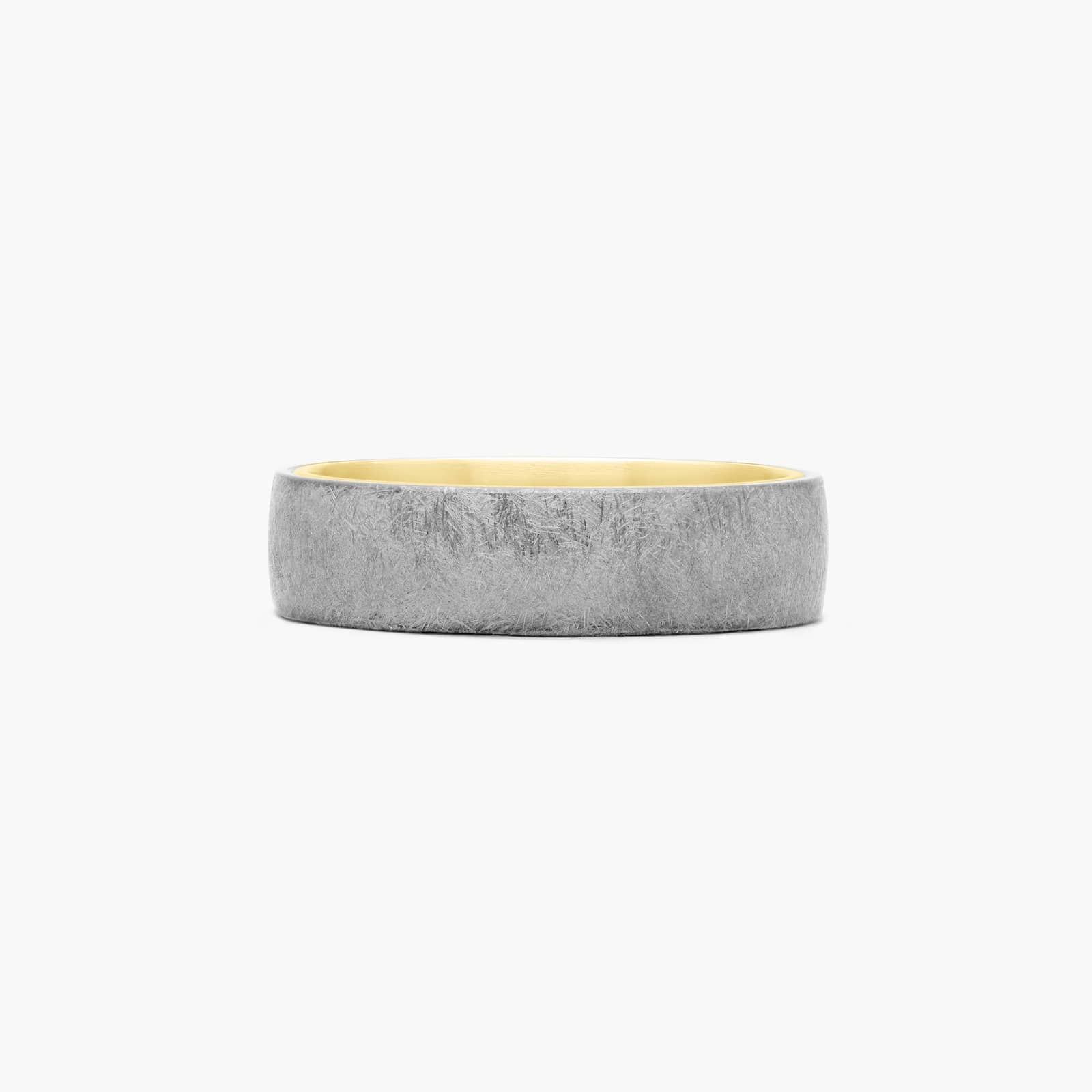 A 6.5mm grey tantalum exterior ring is beautifully complemented by a 14K yellow gold inside ring.