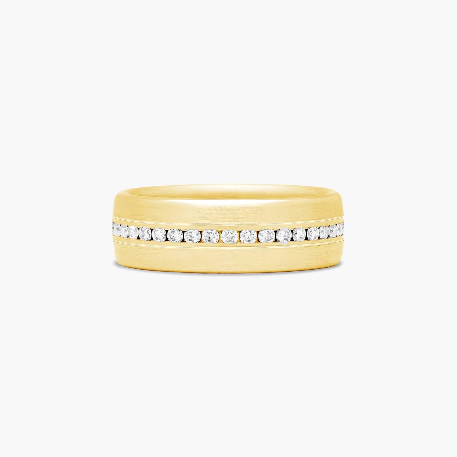 Channel Set Satin Finish Men's Diamond Wedding Band In 14K Yellow Gold (7.50mm)