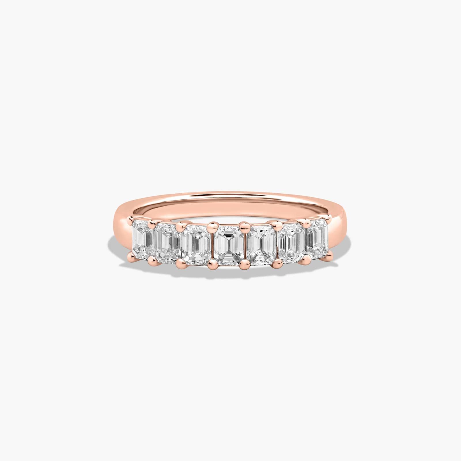 This timeless seven stone anniversary ring features the boldness and elegant gleam of emerald cut lab grown diamonds. A classic, tailored shared prongs setting allows the maximum amount of the lab grown diamonds surface to show.