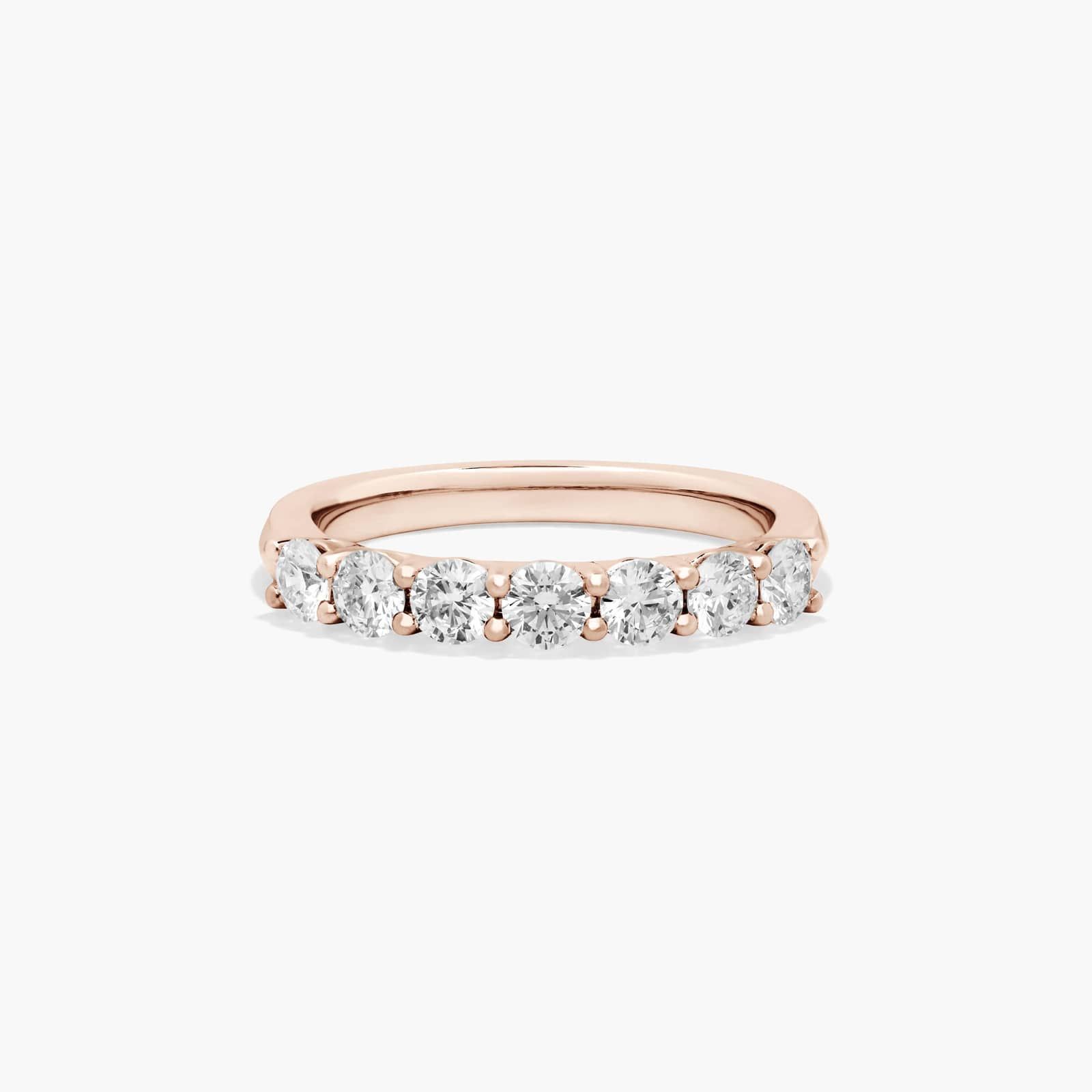 Seven round brilliant cut diamonds are exquisitely displayed in a common prong setting that features low profile, rounded baskets for maximum comfort and elegance.