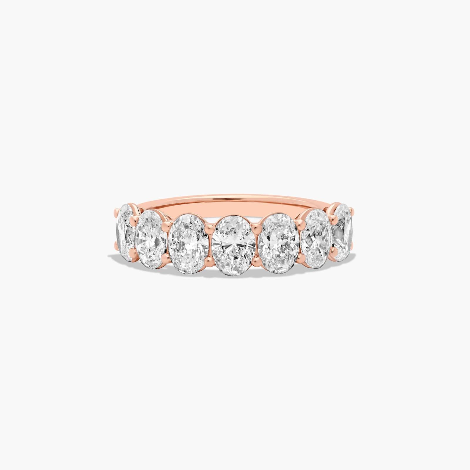 This timeless seven stone anniversary ring features the boldness and intense sparkle of oval shape Lab-Grown diamonds. A classic, tailored shared prongs setting allows the maximum amount of the Lab-Grown diamonds surface to show.