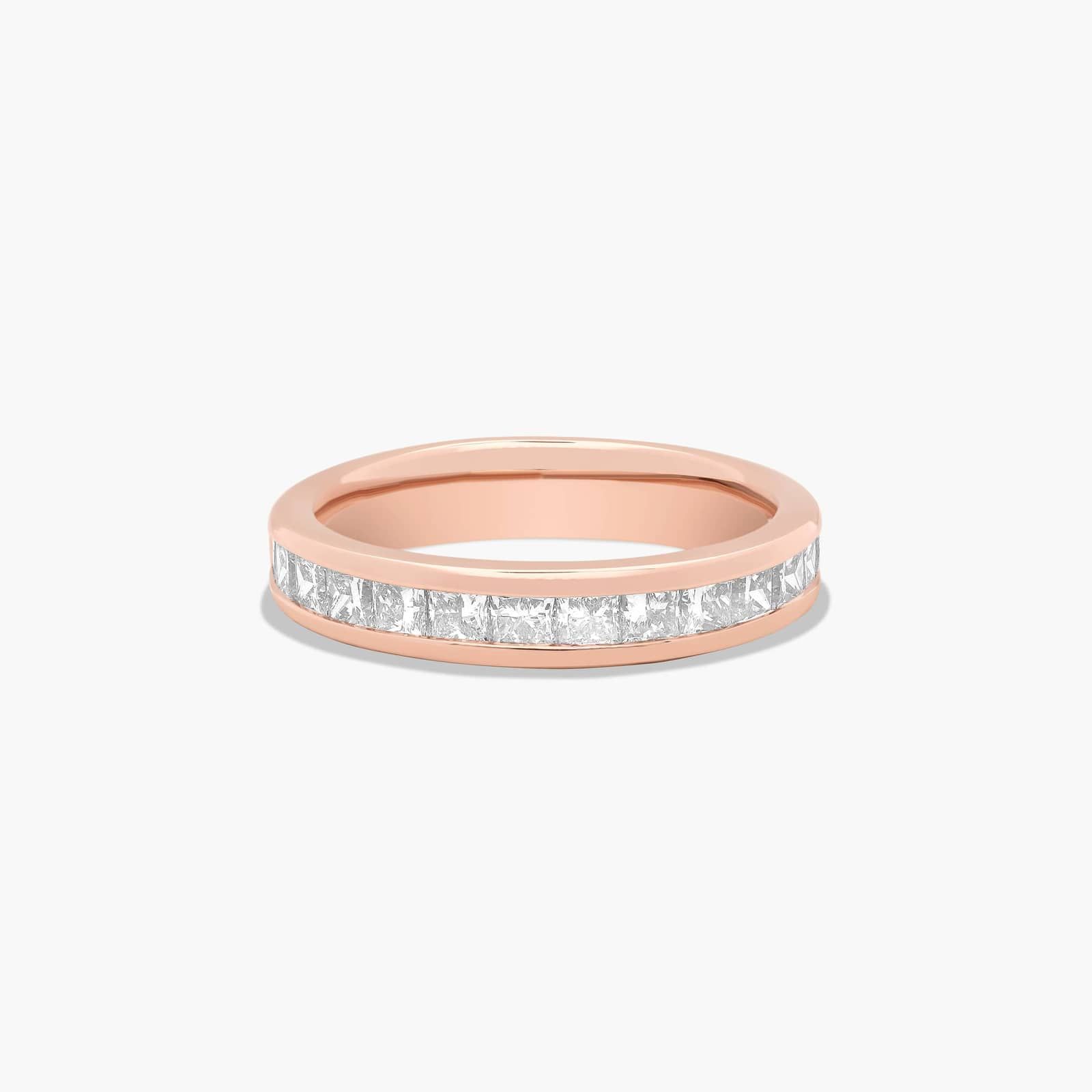 A classic design, this channel set ring shows off princess cut diamonds that are set low to the finger offering a very sleek feel.