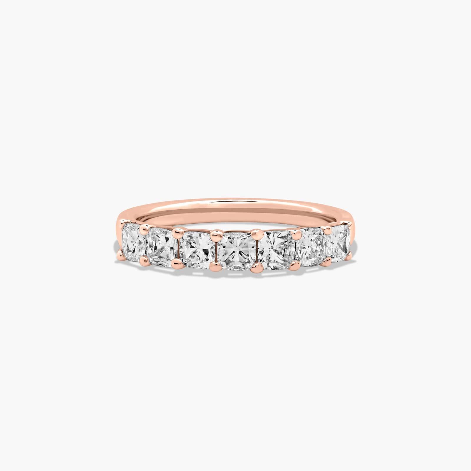 Seven Stone Anniversary Ring With 1 CTW Cushion Cut Diamonds In 14K Rose Gold (2.00mm)