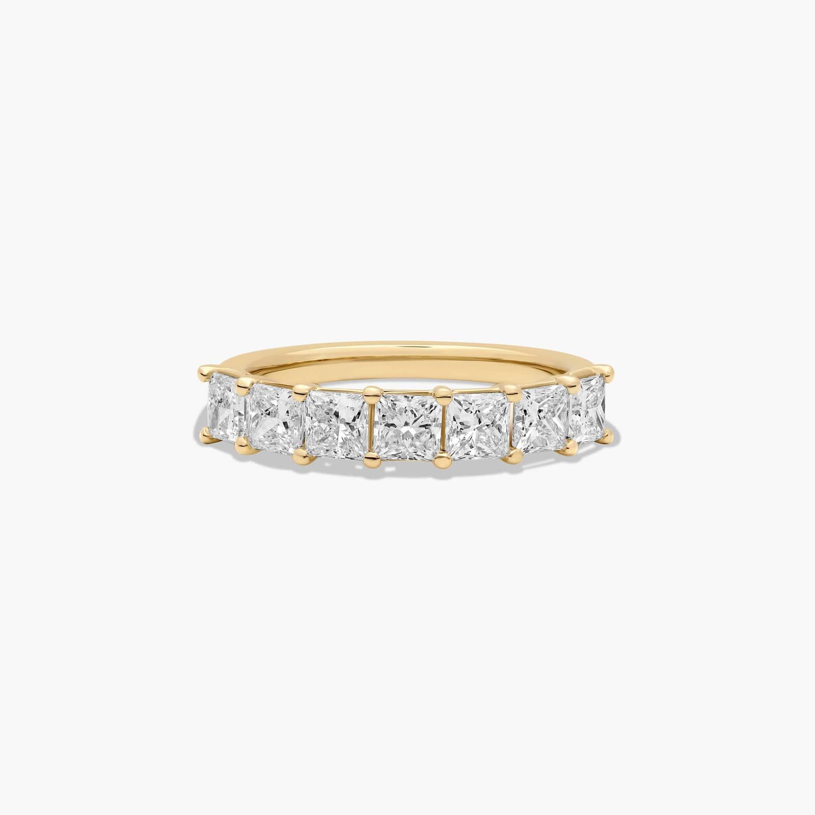 This timeless seven stone anniversary ring features the boldness and elegant gleam of princess cut lab-grown diamonds. A classic, tailored shared prongs setting allows the maximum amount of the lab-grown diamonds surface to show.