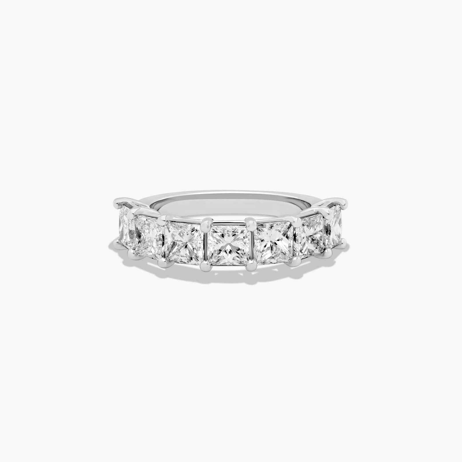 This timeless seven stone anniversary ring features the boldness and elegant gleam of princess cut lab-grown diamonds. A classic, tailored shared prongs setting allows the maximum amount of the lab-grown diamonds surface to show.