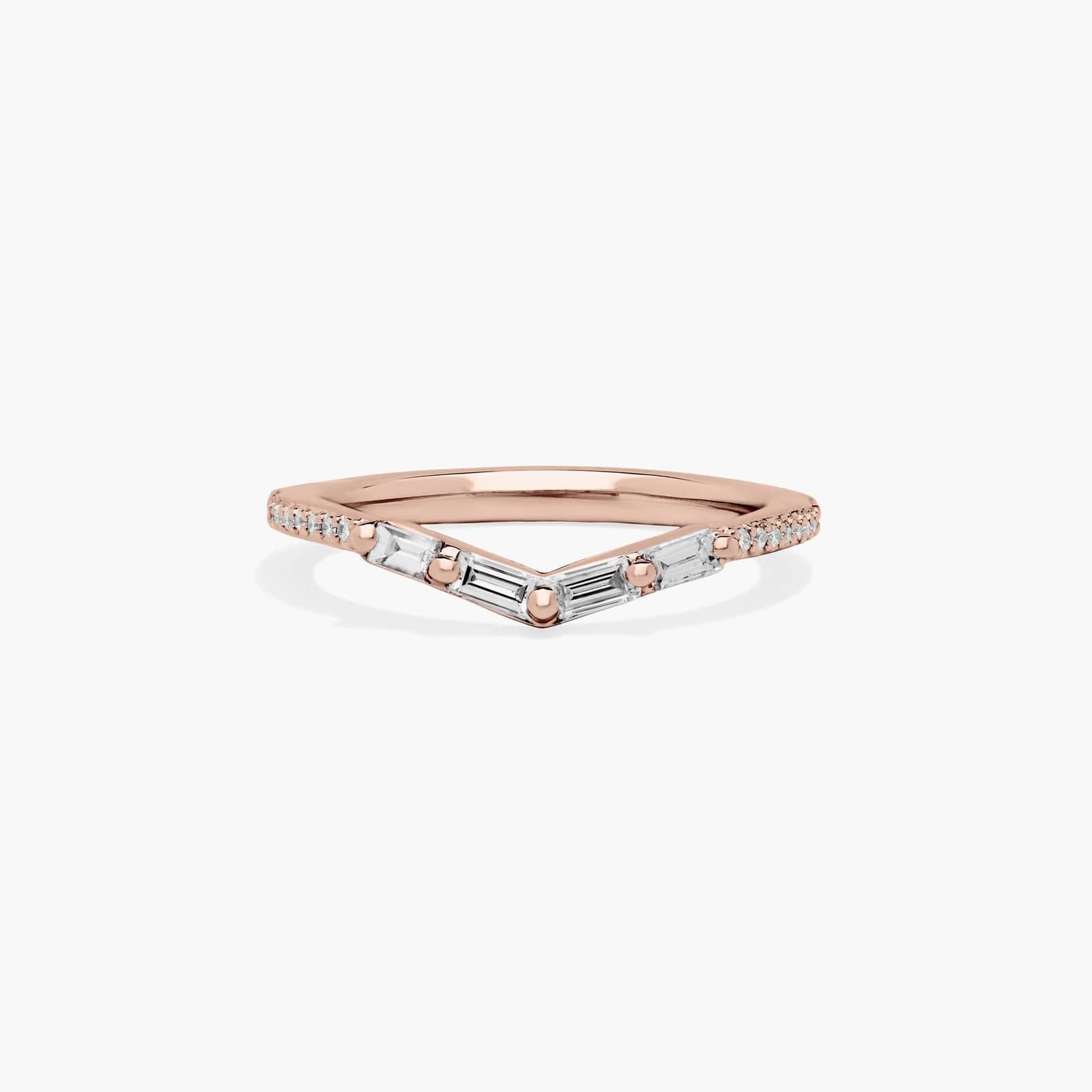 Chevron Curved Insert Diamond Wedding Ring In 14K Rose Gold (2.00mm)