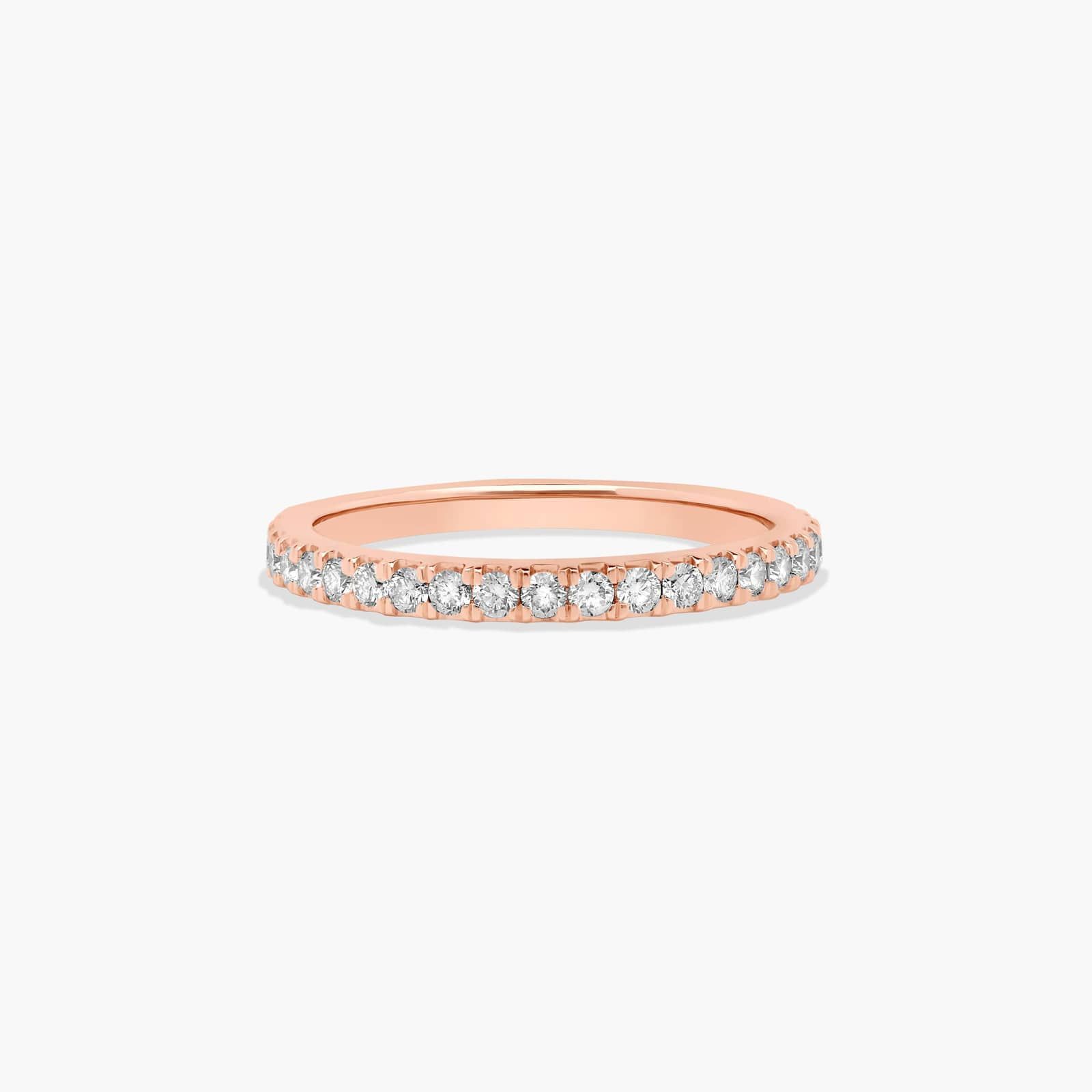 This sparkling wedding ring features 22 round shaped diamonds set using common prongs, giving it a sleek and polished look.
