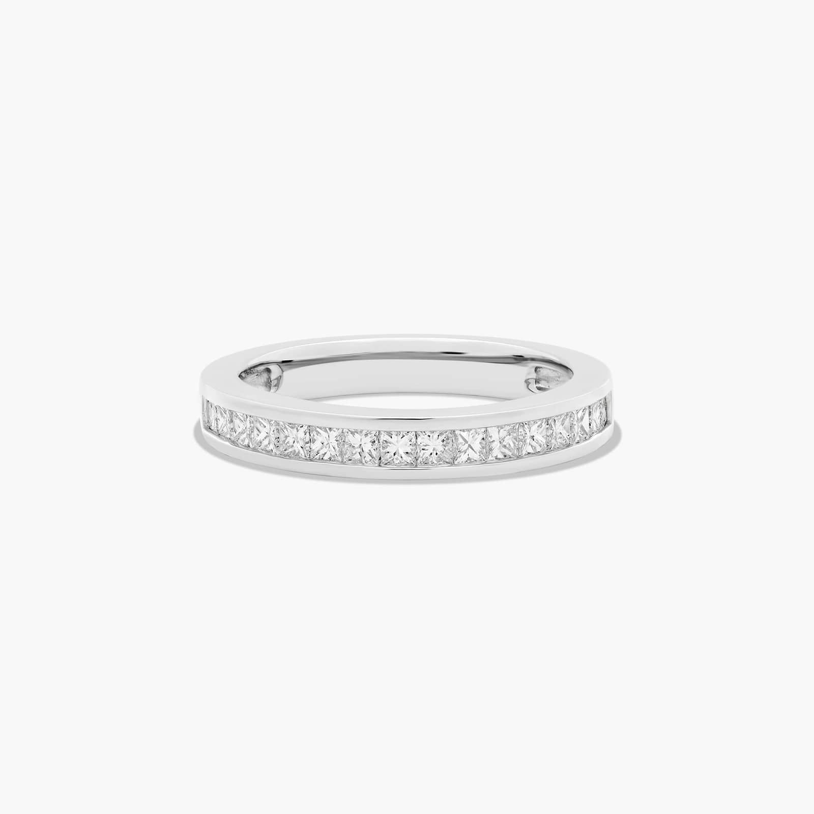 A stunning display of princess shaped diamonds, this diamond wedding ring has a total of 0.50 carats in a sleek channel set design.