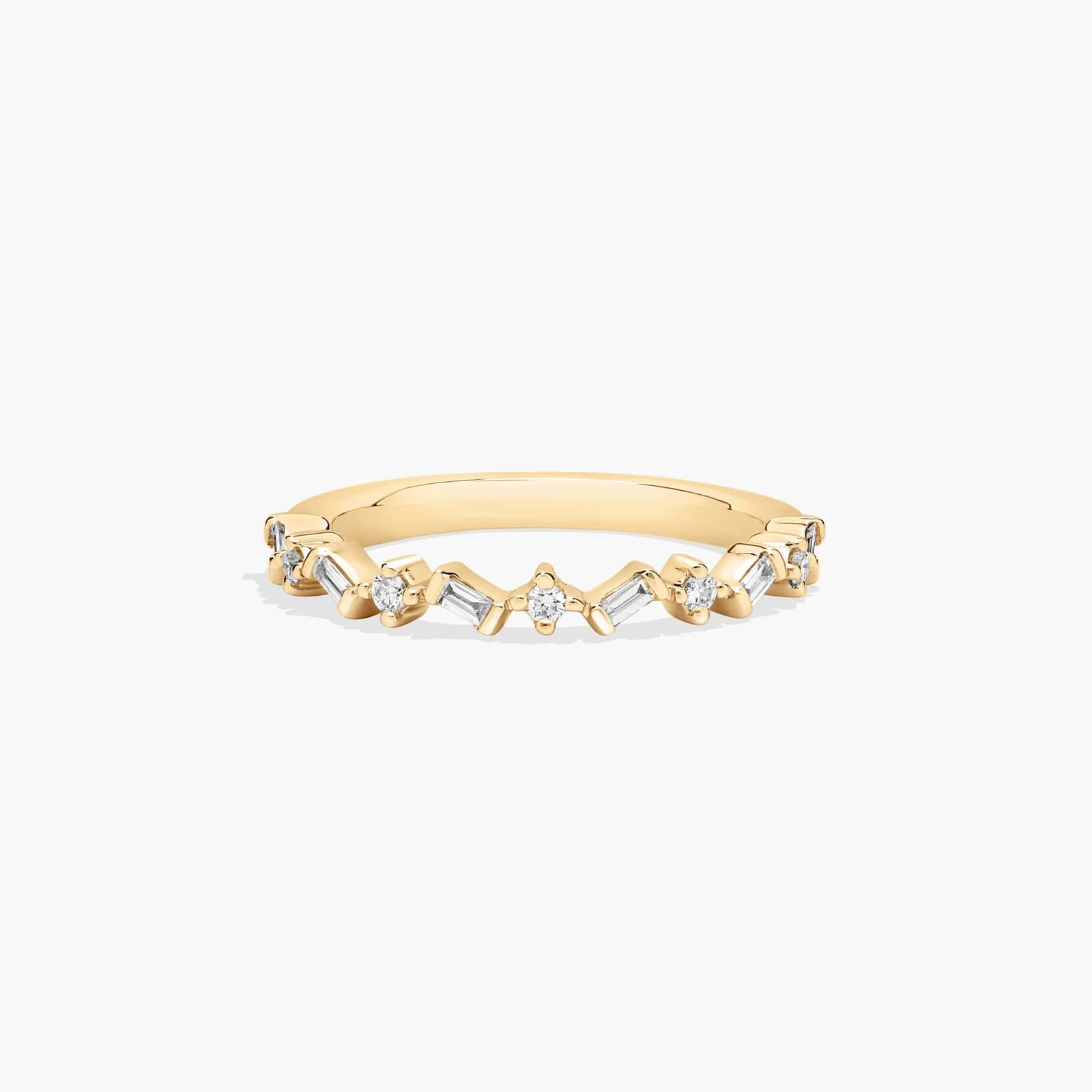 This delightfully dainty diamond wedding band is set in perfect platinum and features modern yet timeless round and baguette diamonds. Created to perfectly fit with our beautiful engagement rings, yet stylish enough to stand out on its own, this wedding ring will get all the oohs and aahs at your "I Do's."