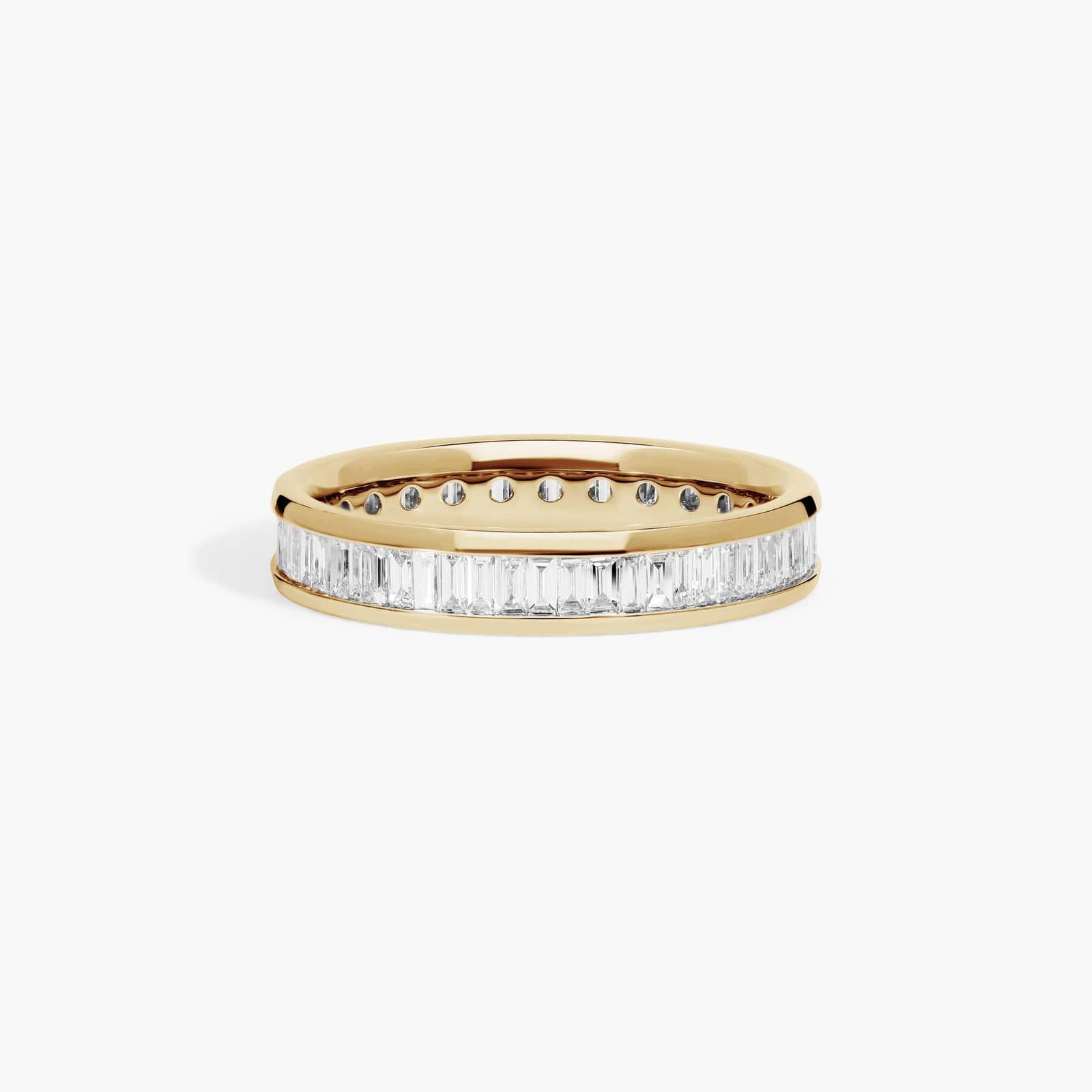 This elegant eternity ring features perfectly cut baguette diamonds channel set on a sleek band. *Ring size will determine exact number and carat weight