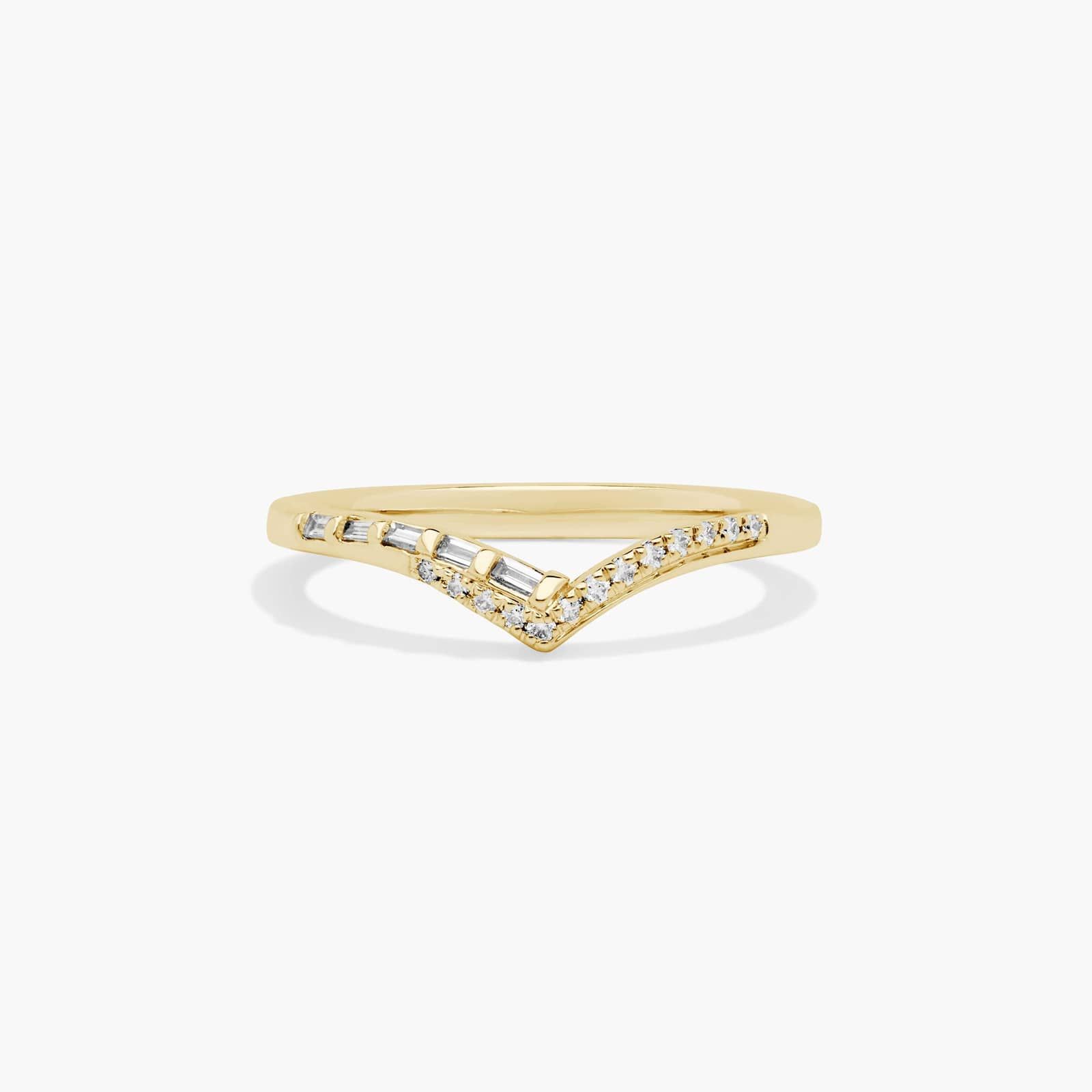 Round and Baguette Pavé V Contour Wedding Ring In 14K Yellow Gold (2.00mm)