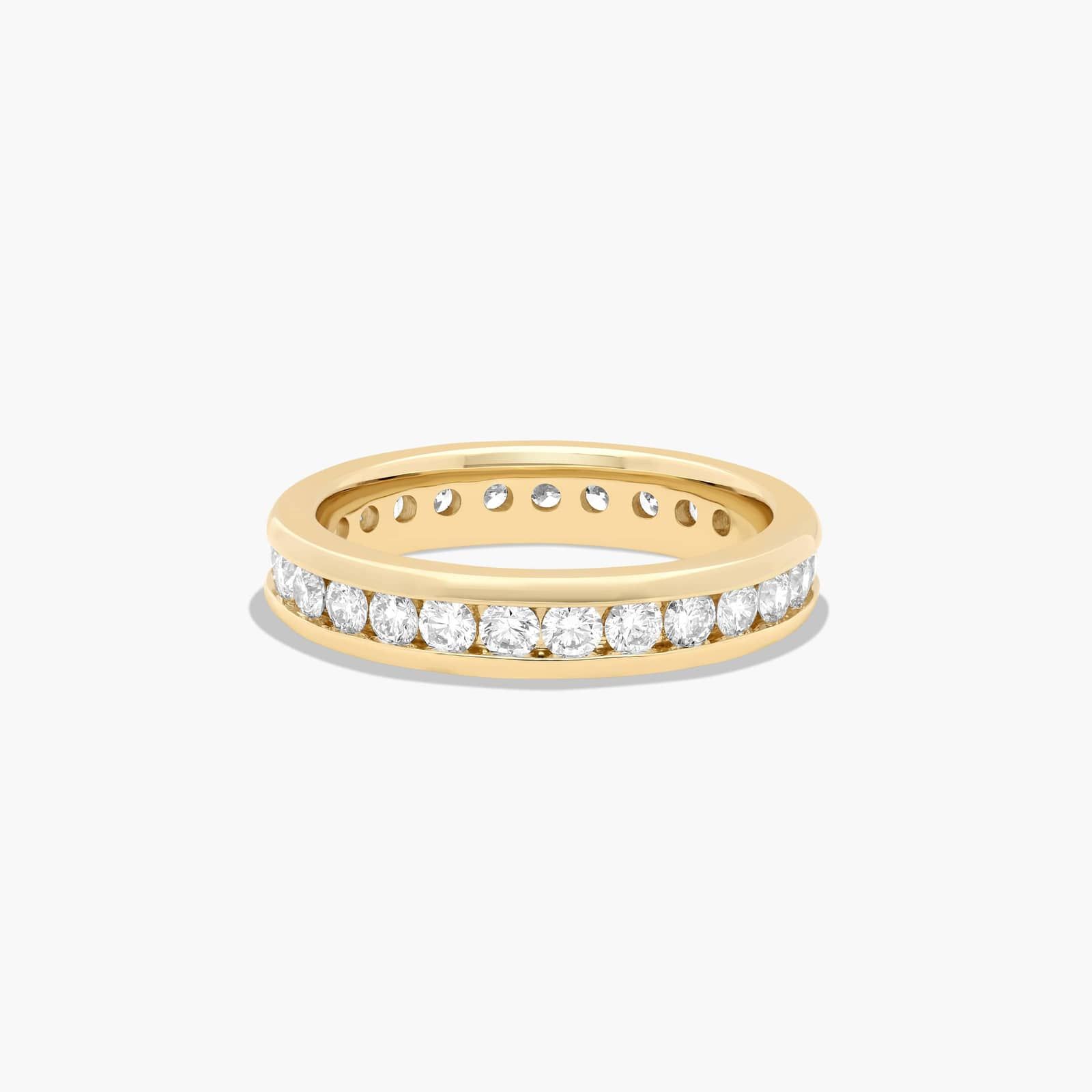 This classic eternity ring features round brilliant cut diamonds with thin channel walls. *Exact number of diamonds and carat total weight will vary depending on ring size.