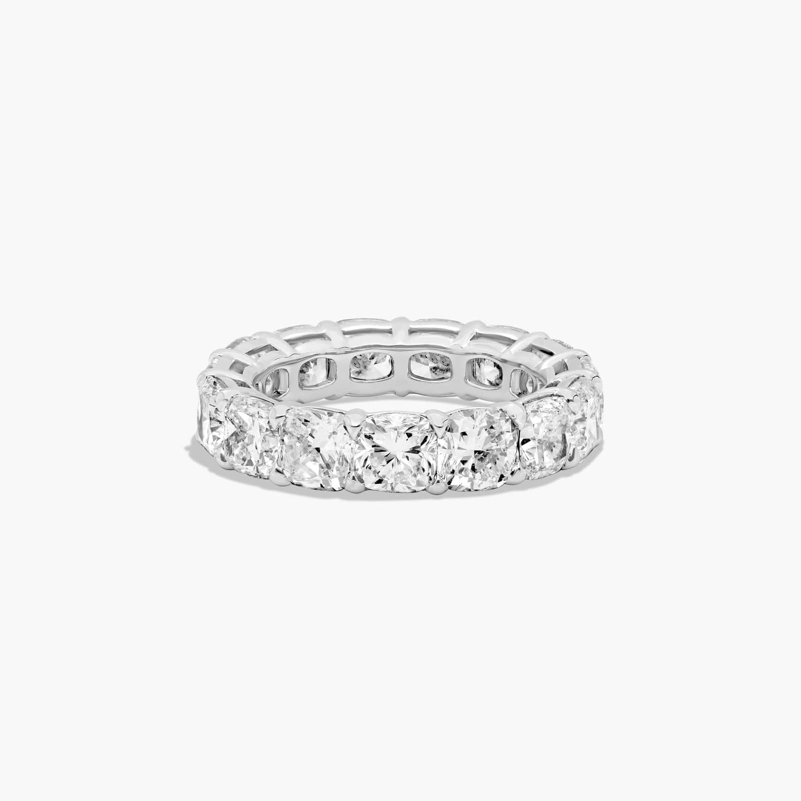 This timeless eternity ring features the boldness and intense sparkle of cushion cut diamonds. A classic, tailored shared prongs setting allows the maximum amount of the diamonds surface to show. *Number of diamonds and carat total weight will vary depending on ring size.